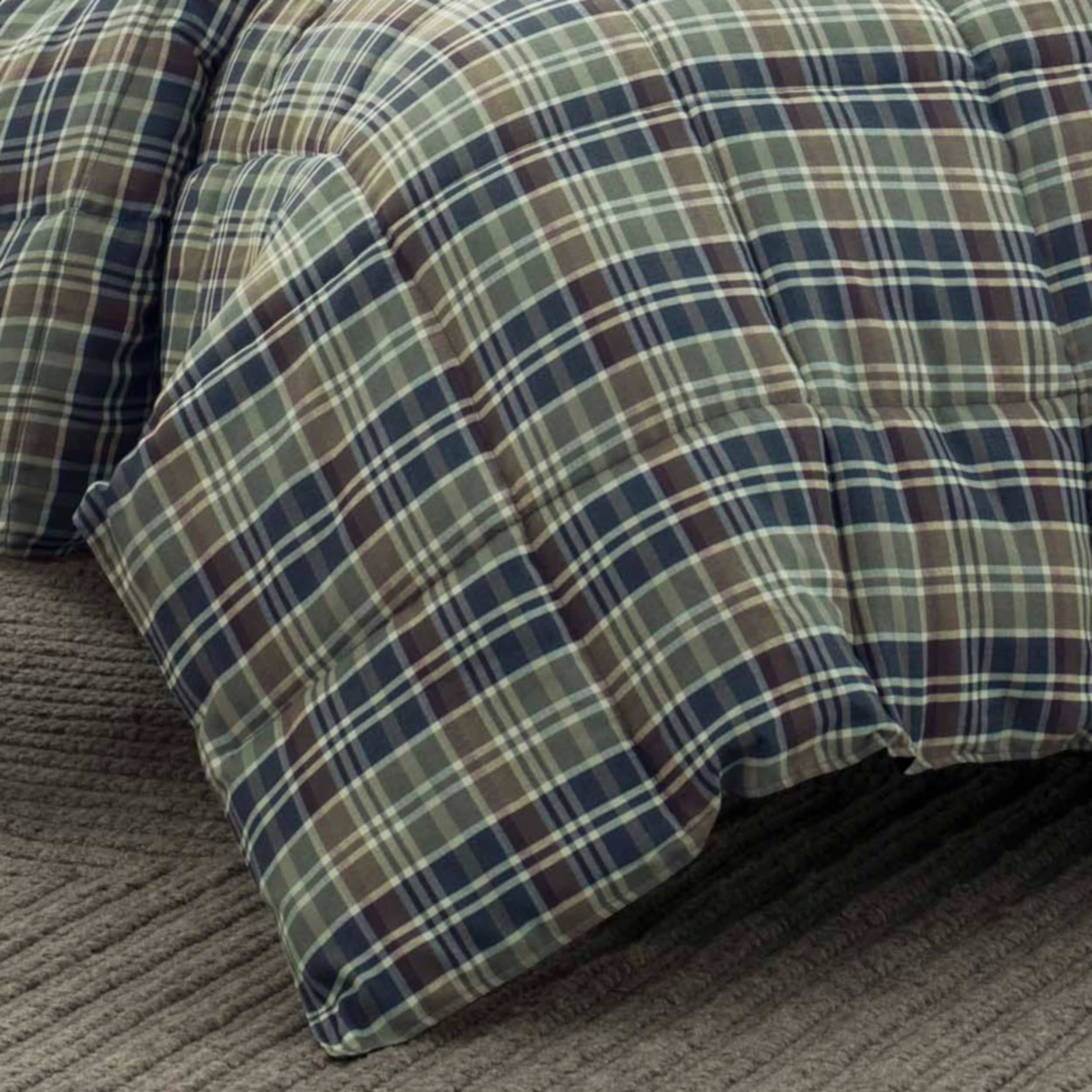 The Eddie Bauer down alternative comforter collection is crafted with 100% polyester fibers. The front of the set features super soft micro-suede, while the back features a brushed microfiber. Each comforter is filled with lofty polyester, providing extra warmth without the weight. Each set includes two matching shams for easy styling (twin size includes one sham). Machine washable for easy care, follow instructions on manufacturer care label for best results. Made thoughtfully and sustainably using non-toxic dyes. Pairs perfectly with the Eddie Bauer sheet collection, sold separately.