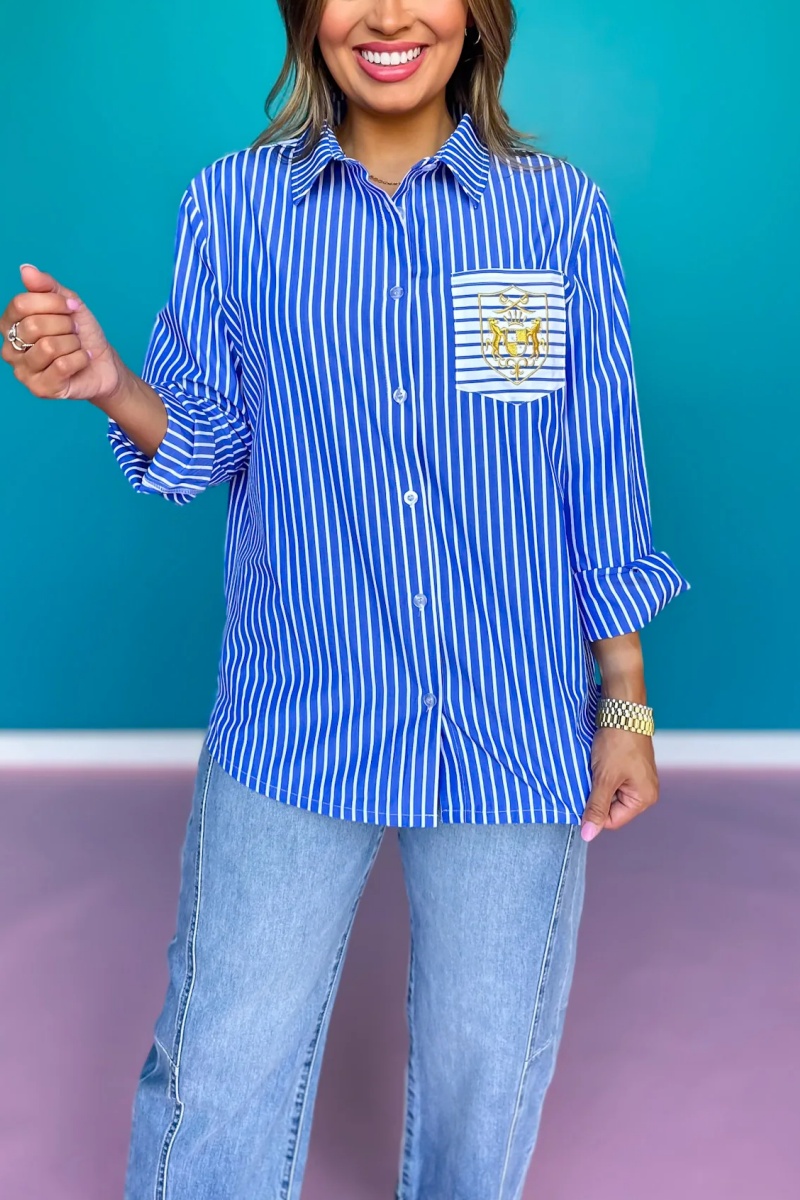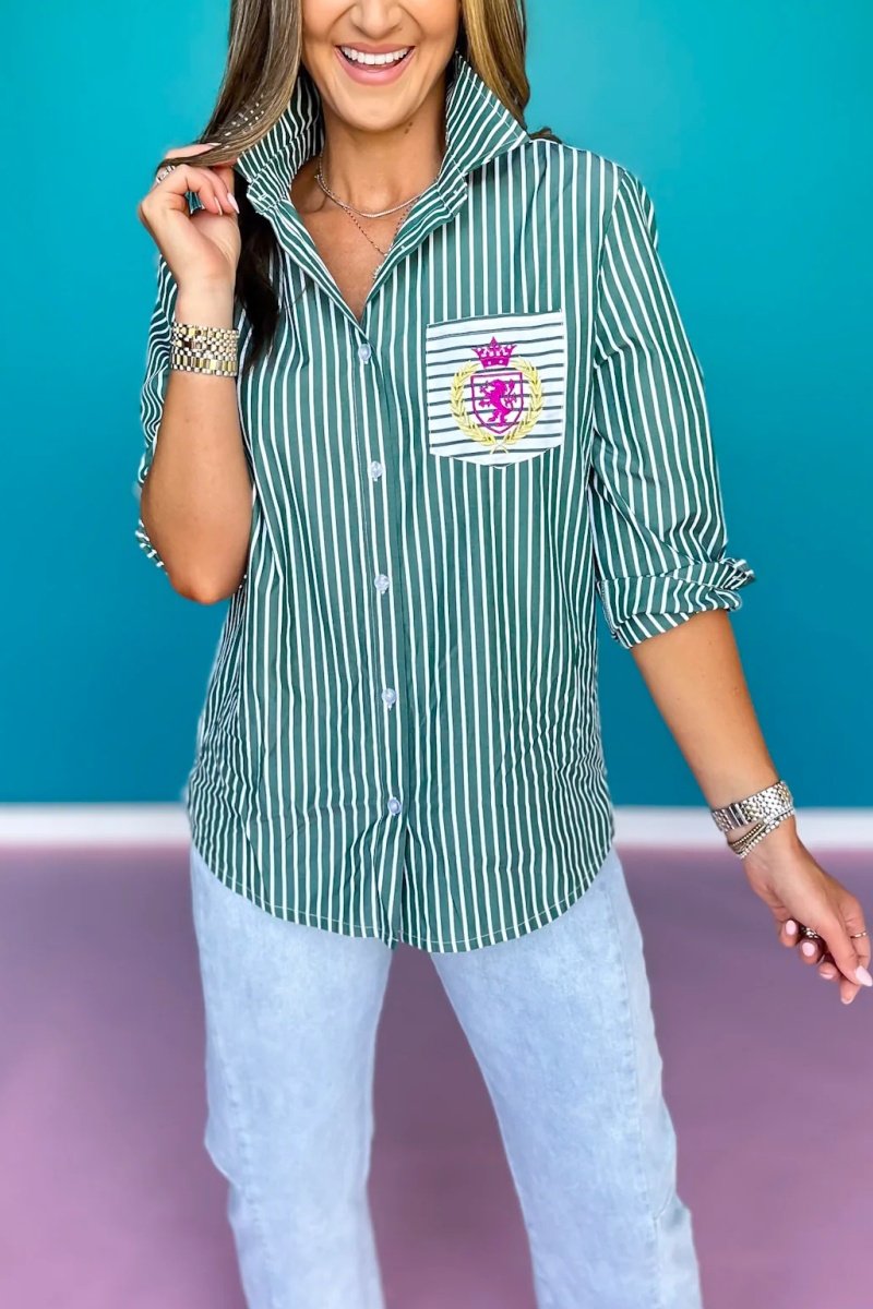 Collette Poplin Stripe Embroidery Top