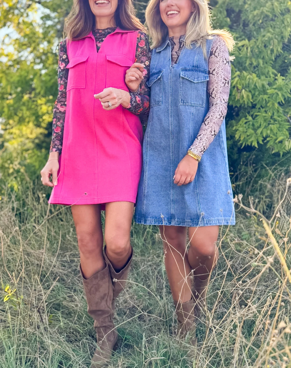 Denim lapel dress