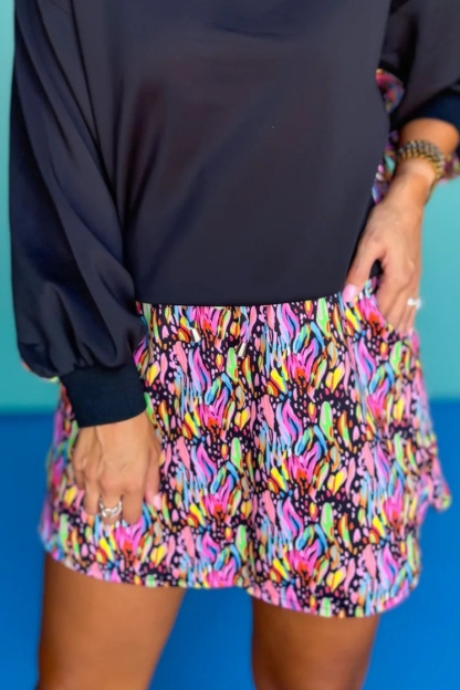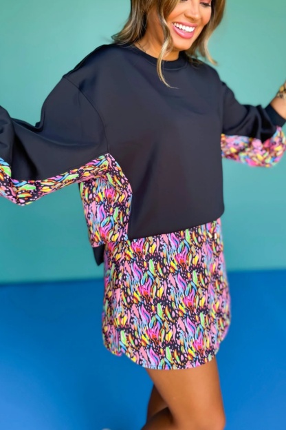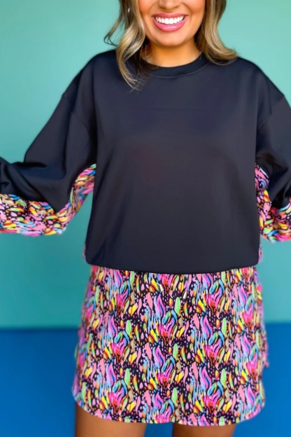 Crew Neck Printed Panel Scuba Set lnBlack Abstract Animal